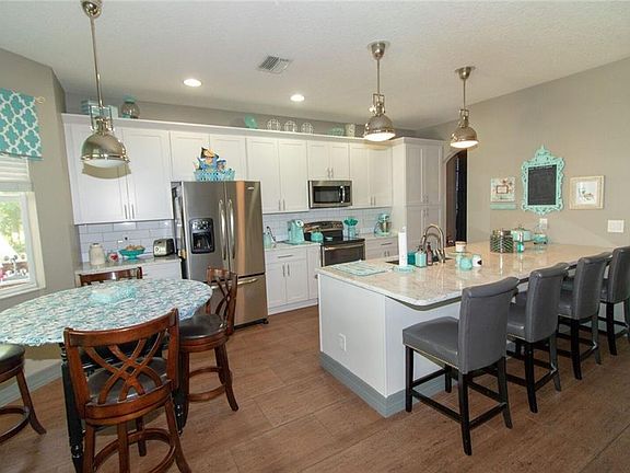 Zoned for Mitchell High School! NO flood zone! NO flood insurance required! Amazing opportunity to purchase in this highly desired school zone! This updated home boasts 4 bedrooms, 2 and half bathrooms, a den, and a 3-car garage. Enjoy true indoor/outdoor living in this resort-style home. French doors lead to your luxurious heated pool. The large patio features an outdoor kitchen with wet bar and a lounge area. This is all just steps from the outdoor fire pit situated on the over-sized lot. All this with no neighbors behind or to your side. Talk about privacy! This home has been beautifully remodeled with attention to detail. The kitchen features new shaker cabinets, tile, and double oven with a large peninsula. Throughout the home you'll also find updated bathrooms, flooring, window treatments, and 10-foot ceilings. Don't delay! Schedule your showing today and see all this home has to offer!