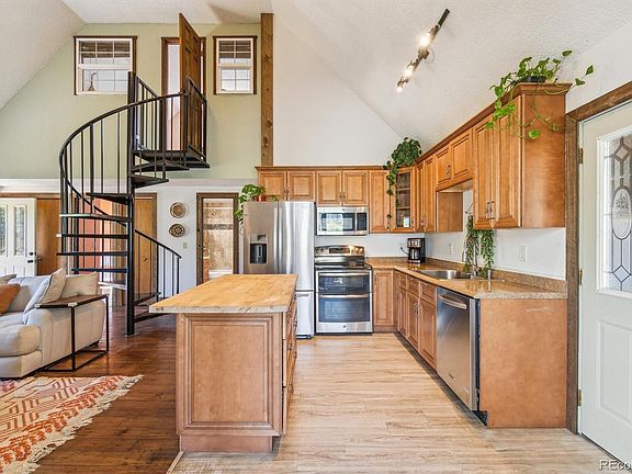 This beautiful charming home nestled in the Echo Hills area of Evergreen won't last long!  Mountain living at its very best with groves of aspen and evergreen for miles.  The views of Mt. Evans won't disappoint while soaking up the sun on the two recently built (2021) decks constructed with top-of-the-line composite material for easy maintenance, providing an abundance of outdoor hosting space, tranquility, and wildlife.  Enter the front door to hardwood floors and a vaulted ceiling in the living room with an open layout to the kitchen.  The kitchen features a butcher block island, stainless steel appliances and soft-close drawers and cabinets.  Did I mention the cozy wood burning stove in the living room? Above, spiral stairs wind to another bedroom. The newly remodeled sunroom has vast windows and is perfect for unwinding and enjoying the beautiful views.  Clear Creek County reflects 1,044 square footage.  However, the appraisal report reflects 1,270 of gross living area above grade.  New Well installed in 2023, Roof in 2018 and exterior painted in 2022. Septic rated for 3 bedrooms and suitable for 6 people.The Septic is scheduled to be inspected and pumped by Foothills Septic on August 29th.  The propane tank is located on the opposite side of the garage.  The sellers have Clear Creek Broadband.  They both work from home and have not had any issues with speed....50-80 MBps Down / 10-25 MBps Up.  There's a studio above the garage with a deck and views of the Denver skyline.  Minutes from Echo Mountain Ski Resort and popular hiking trails like Chief Mountain, Beaver Brook, and Echo Lake.  Approximately 15 mintues to I-70 and 40 to 45 minutes from Denver.  Hurry and book a showing today!