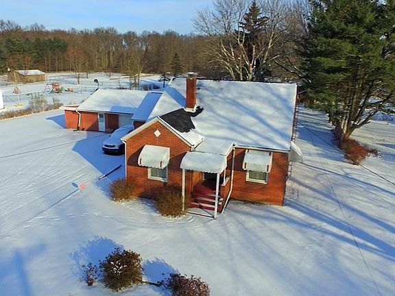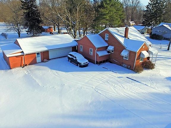 Don't let this charming brick two-story slip by. Schedule a walk through today to see just what this home has to offer. This estate sits on a deep running plot of land and the main structure features near all brick construction. An expansive garage is attached via covered walkway and boasts tons of room for vehicles, storage or shop space. Out back, an enclosed patio leads to a covered bocce court. A separate gardening area features a large lattice while an outdoor firepit and large shed continue the outdoor accommodations. Inside the home, you'll find rich hardwood flooring that runs from room to room along with brightly painted walls accented with clean, white trim board. Natural wooden doors at each entrance help to complete the look. A large kitchen sprawls around the center of the home, with big countertop space and plenty of real wood cabinetry. Two ample bedrooms are found adjacent to the formidable first floor full bath, where an oversized vanity is found. Upstairs, an additional living quarters complete with a private half bath reside. At the basement level, an additional bath area offers separate shower and commode spaces. A large rec room is currently home to a pool table, while space continues to wrap the basement as nearby storage features a large chest freezer and nearby laundry service.