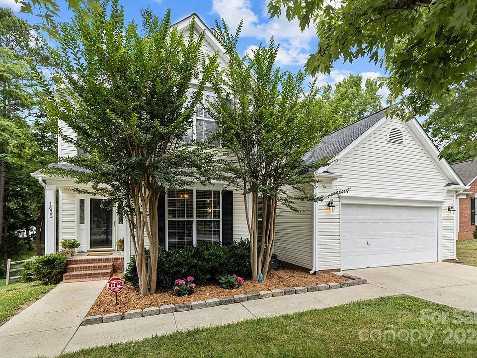 Wonderful opportunity to own an updated home in desirable mature neighborhood minutes from Charlotte Douglas Airport, the Whitewater Center, and Uptown Charlotte. Great layout with a modern touch. New Roof & New Deck/2021. Updated Primary/Guest baths with tiled floors/new vanities, new toilets/Primary has new glass shower enclosure/2021. Updated Kitchen with granite countertops/mosaic tile backsplash/refaced kitchen door fronts/under and over cabinet lighting/2021. New hardwood bamboo floors throughout the downstairs/new lighting fixtures throughout home/2021. New Whirlpool washer/new LG French Door Refrigerator/2022. New Trane HVAC system w/wifi thermostat/2023. New carpet upstairs/new Whirlpool microwave/new ceiling fans/new quartz bath counter in half bath. Enjoy full functional gas fireplace, fenced yard with firepit, oversized garage with workspace/shelving, and mature landscaping. Community has trails, playgrounds, clubhouse, and pool for summer fun.