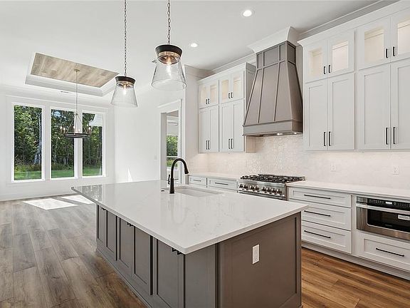 The chef-inspired kitchen with Quartz Countertops is both functional and stylish, with a large island featuring dual sinks, for meal prep and socializing. Seamless access to the expansive covered rear patio—an ideal setting for indoor-outdoor living.