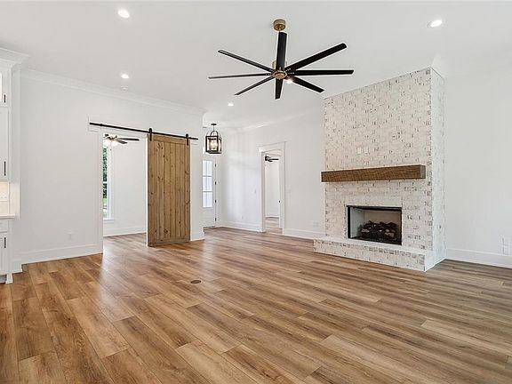 Welcome home! Step into a spacious foyer that opens to an inviting, open-concept living area with a thoughtfully designed split floor plan with Luxury Vinyl plank flooring throughout The living room features a striking fireplace with a custom mantle, creating a cozy focal point. Adjacent to the living area, a versatile flex room offers space for an office or a home library.