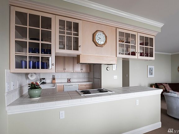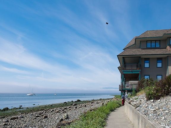 Live right at the water's edge and enjoy the views, wildlife, boating activity. Lock it up, leave your car in the secure garage because you are just moments from downtown. You can listen to the waves and sounds of the waterfront every day. Views to the Bay, Indian and Marrowstone islands, the Cascades, the Olympics and Mt Rainier. Two bedrooms, two baths. The well laid out kitchen/dining/living area is where the views and light are so you can enjoy waterfront living inside and on the big deck.