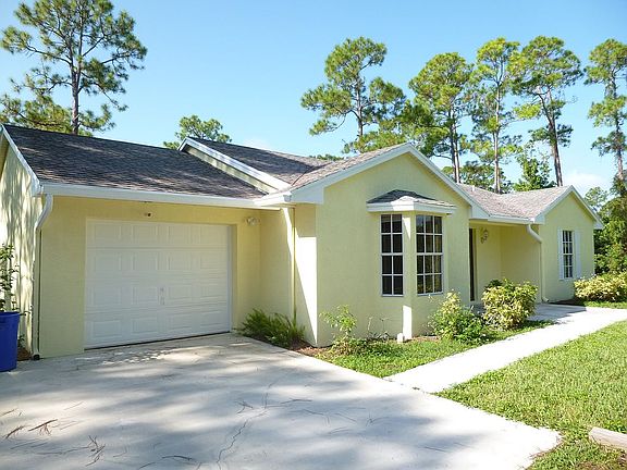 CBS house in The Acreage. Built in 1997, has modern white single hung aluminum windows. NO POND. Very private fenced yard. Vaulted ceiling, porch has been enclosed, living area 1,472 SF, split plan 3 BR 2 BA, 1 car garage. Upgraded water system. 10' x 20' structural shed. Plenty of room for RV parking. Price includes large safe. Sold "As Is" with right to inspect, owner/agent. No price reduction during the first 30 days of listing, buyer must provide bank pre-qualification letter prior to showing.