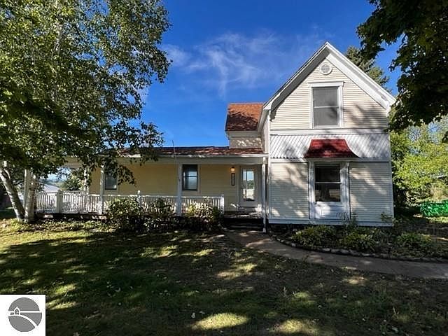 Old Mission Peninsula farmhouse available for rent. Amazing sunset views over the vineyards & cherry orchards looking out to West Bay from this 4 BD, 2 bath, 1,936 sq. ft. home. Countryside view with no other house in sight. Covered wrap around porch. Original woodwork, wood floors upstairs, newer wood floors on the main level. Large kitchen, adjoining dining room. Main floor bdrm w/ 3 bdrms upstairs. Upstairs bathroom was recently completely re-done. Family room in lower level. New septic system. Parking spaces on either side of the house. No garage. Use of the barn on the property is not included in the lease. Minimum of 1 year lease.