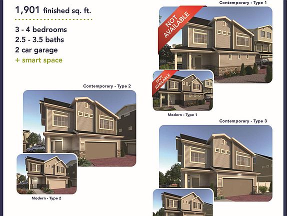 Welcome to the Surrey! This spacious home is1,875 sq. feet, with 3 bedrooms, 2.5 bathrooms and a, 2-car garage. The walk in closets and our popular upstairs laundry of convenience and luxury. The smart space on upper level awaits your unique vision, and the built-in drop zone keeps everything organized. The enlarged kitchen island provides space for everyone and the wraparound porch is perfect for your outdoor enjoyment. Modern Elevation