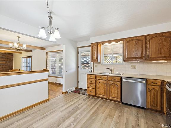 Wow! rare Original and Only Occupant for 52 years, meticulously maintained beautiful large brick ranch style home with huge finished basement and endless storage. **Open floor plan, beautiful real hardwood floors, kitchen updates in the last few years, primary bath updated Dec 2023, stainless steel appliances new 5 years ago, gas fireplace, central air. The windows, non-brick portions of siding, and electrical service panel have been replaced, new roof-Sept. 2024, 6ft privacy fence was recently refinished! Two large living spaces upstairs and a 1,200 square foot basement (outfitted with a wet bar), there's ample opportunity to spread out. Note the stylish exposed beams in the main living area and the bay window in the kitchen with backyard views. Outside you'll find that the home has a manicured yard with a 12'X8' shed and large covered concrete patio. Downstairs, a non-conforming bedroom and 3/4 bathroom serve as a separate area entirely or an office. The massive utility room with wall to wall shelving is great for all those storage boxes but large enough for a ping pong table/game or hobby room. Conveniently located off of 6th Avenue, this home is an easy commute to Anshutz center of hospitals, and easy commute to Denver International and to Buckley Air Base.