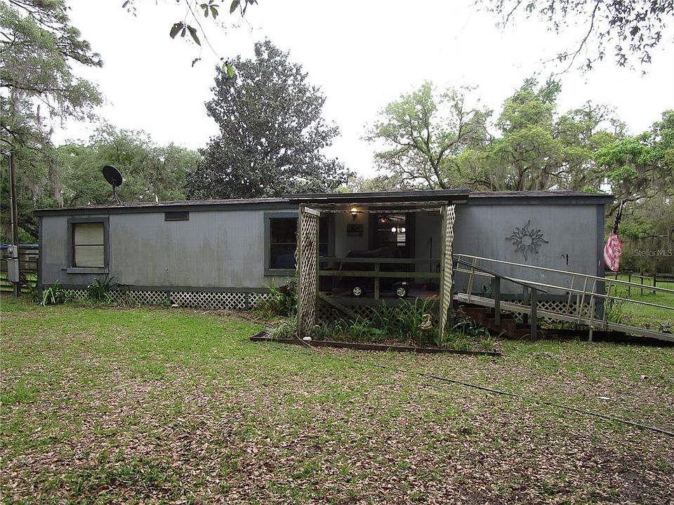 Cash Only read the whole ad: Giddy Up! Calling all horse lovers. Mobile home in need of some TLC with 4.6 acres of perfect horse property, fenced, crossed fenced, barn with two stalls. Home features open floor plan, living room, good size kitchen and dining room, vaulted ceilings, split floor plan. Primary bedroom is spacious with a walk in closet, en suite bathroom. Two bedrooms and hall bath on the other side of the home. Inside laundry room, nice deck on the back facing the ancient oaks and pastures. Large shed with electric and water could be a man cave, she shed, lots of possibilities. Raised garden bed, chicken coop. Cash only fixer upper septic tank not working, no CHA wall units only.