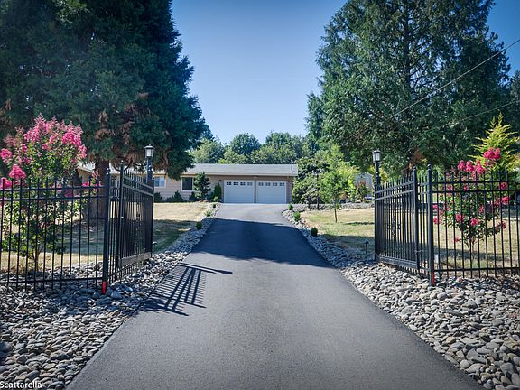 Beautiful ranch house on large 2 acre secluded lot with picturesque views lined with evergreen trees! Oak hardwoods, big picture windows, living room, bright formal dining. 4 BR, 3 full BA, expansive kitchen, eating area, office area, big bonus room. Covered deck to entertain year round, huge wrap around yard, extra long u-shaped driveway, RV parking, fully gated. Plus a 2-car garage, newer 98% HE furnace/duct work & Milgard windows!