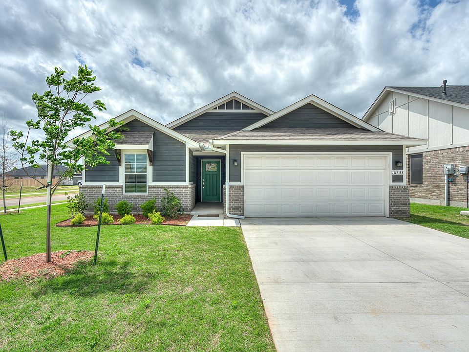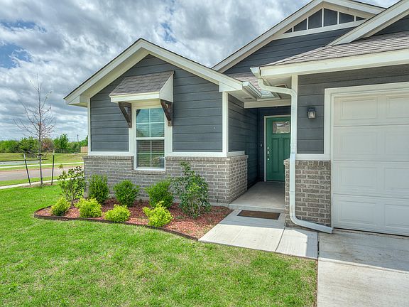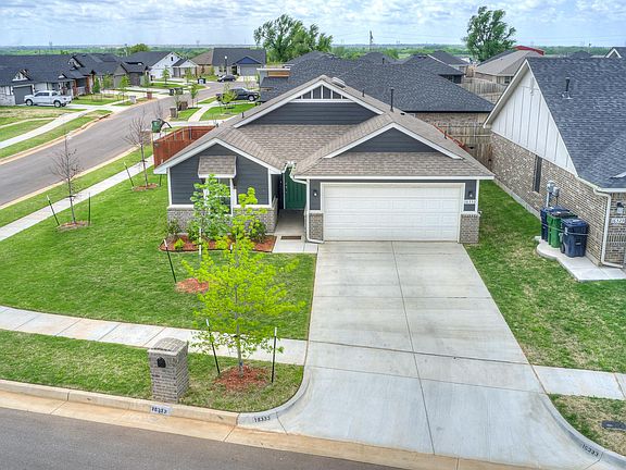Welcome to this stunning 3 bedroom, 2 bathroom home in the desirable Featherstone community. Built in 2020, this house boasts tall ceilings and an open-concept kitchen with granite countertops and gold-tone fixtures. The spacious layout offers plenty of room for family and guests, with a large living area and separate dining space. The master suite features a luxurious en-suite bathroom and walk-in closet, and the two additional bedrooms are generously sized. The 2-car garage offers plenty of storage space. For added peace of mind, the home is equipped with a storm shelter. The fully fenced backyard is perfect for entertaining, with a large patio and plenty of room for outdoor activities. Don't miss this opportunity to live in a beautiful new home in a fantastic community. Schedule a showing today! (Please note Photos were taken 04/30/2022). Renter Responsible for all utiilities & lawn maintenance.