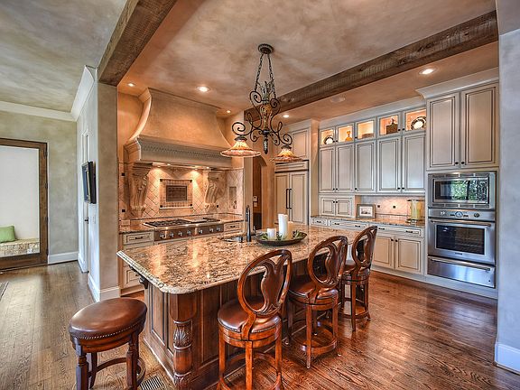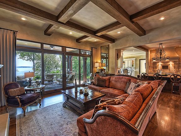 European style waterfront estate features unrivaled lakeside entertaining. Upscale resort pool/spa with swim-up bar, summer kitchen & paver patio. Classic stucco & stone exterior, copper gutters and exposed wood beams. Gourmet kitchen opens to a covered terrace with outdoor fireplace. Master suite on main level has lake views, vaulted ceiling and luxurious bath. Private beach, pier has gazebo & 3 boat slips. One of Lake Norman's premier locations near The Yacht Club & The Peninsula Club.
