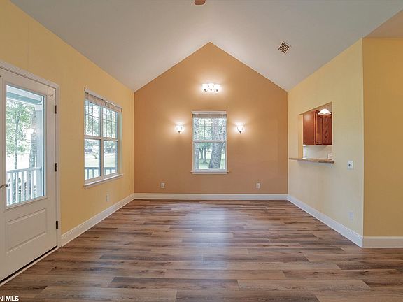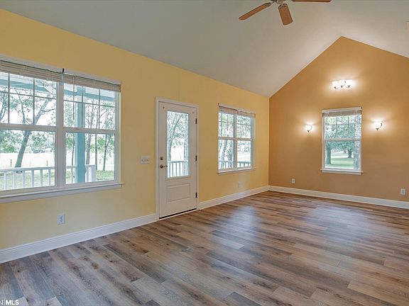 Wow! You are not going to believe the spaciousness provided in the 3 bedroom, 2bath floor plan of this cozy cottage on approximately 2 acres in Silverhill. The view from the front porch will make you want to spend you mornings and evenings overlooking the rolling acreage across the street. When you enter from the covered front porch the living and dining great room has vaulted ceilings and new vinyl plank floors that continue down the hall area. The well-arranged kitchen has plenty of cabinets and countertop with a serving passthrough to the dining area. Kitchen appliances, refrigerator, dishwasher, are included. Another small porch is located off the kitchen a few steps away from the fully insulated 2 car garage. This property has been maintained with attention to details. The grounds contain approximately 2 acres and the house is strategically located to offer the possibility to build a new home and use the existing home as a guest cottage or even bring your RV and have this as your deluxe camp for your luxury RV. This property also has the potential to create more lots for future use. You do not want to miss this one, call today for a showing!
