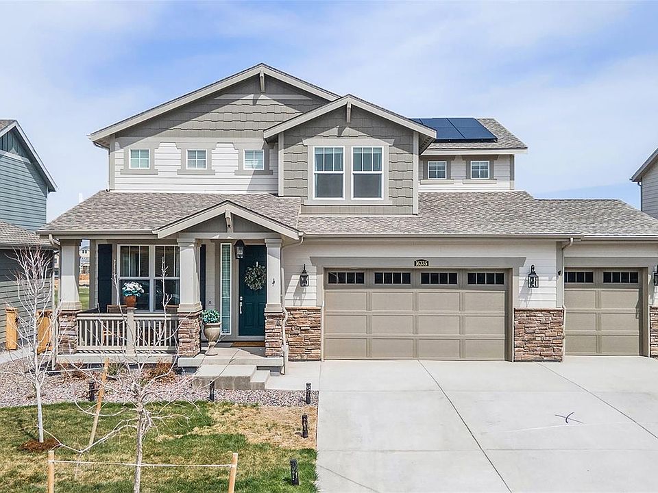 **Extremely motivated sellers** This is a rare opportunity to own a stunning move-in ready home in the highly sought-after Reunion Neighborhood. The immaculate residence is located on the 11th hole of the Buffalo Run Golf Course, offering breathtaking views of the mountains and the greens. The open-concept floor plan is perfect for entertaining, with a tastefully upgraded kitchen, media room, and a spacious office featuring custom barn doors. The property features four spacious bedrooms, including a luxurious primary suite with elegant finishes and mountain/golf course views, as well as three upgraded bathrooms. The home also boasts top-of-the-line fixtures and finishes, a covered patio with stunning mountain sunset views, and a backyard with a new patio and low maintenance turf area. The pre-insulated unfinished basement with 9ft ceilings presents an excellent opportunity for expansion and customization to make this home truly your own. The oversized, 3-car garage offers plenty of additional storage space and room for larger vehicles. In addition to the home's impressive features, the Reunion Neighborhood offers an abundance of amenities, including membership to the Recreation Center and access to the pool. The home's convenient access to E-470 and DIA, as well as its proximity to numerous parks, restaurants, and shops, make it the perfect blend of luxury and convenience.