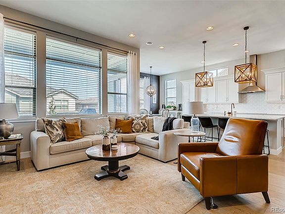 Looks like a model home! What an outstanding ranch model in Anthem Highlands. Luxurious kitchen with a 48 inch refrigerator, double oven, and induction stove. Enjoy your wine fridge or your full wine room off of the dining room. Take notice of the amazing detail work in the tray ceilings and fireplace stone along with the wine room stone. The primary bathroom is to die for, with an extra large shower and heated floors. Laundry room located just off of the primary walk-in closet. The 3rd bedroom upstairs with frosted french doors, can also be used as a wonderful office. Migrate to the hugely open finished walkout basement with plenty of light. You'll also see a full kitchen bar complete with convection microwave, full size fridge, and plenty of cabinets. With the walkout sliding doors and full windows, you won't feel like you're in the basement. Two full bedroom and a bathroom, plus loads of storage. Minimalist landscaping needs and of course mountain views on those clear days. Enjoy this almost brand new home without the new construction costs and hassle.
