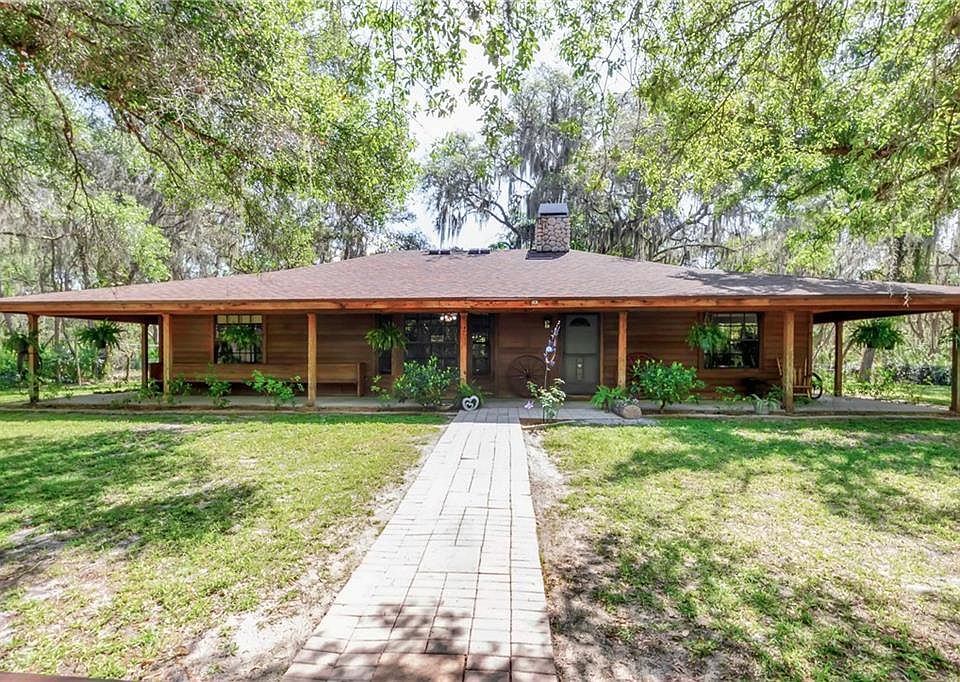 Socially distanced in beautiful Eastern Sarasota County is where you will find this original owner, hidden gem of a home on almost 6 acres of pristine Old Florida. As you pull into the circle drive of surrounding oaks, you will be welcomed by colorful vegetation and a fenced yard leading up to your walk around porch that surrounds the entire home. Walking through your front door you will enjoy an open floor plan and an amazing stone fireplace. Fresh new vinyl laminate throughout the main areas and master bedroom was just installed 2020. The split floor plan also has new flooring in the other 2 bedrooms as well. This beauty is strong mechanically too with a new roof replaced in 2020 and AC unit updated in 2019. When you're ready to get away from the stress of the city and enjoy Sarasota countryside, this is one of the most reasonably priced single family homes over 5 acres and won't break the bank. If the stress still hasn't melted off yet, there's a target shooting range out back :^) Set your appointment today before this one goes under contract.