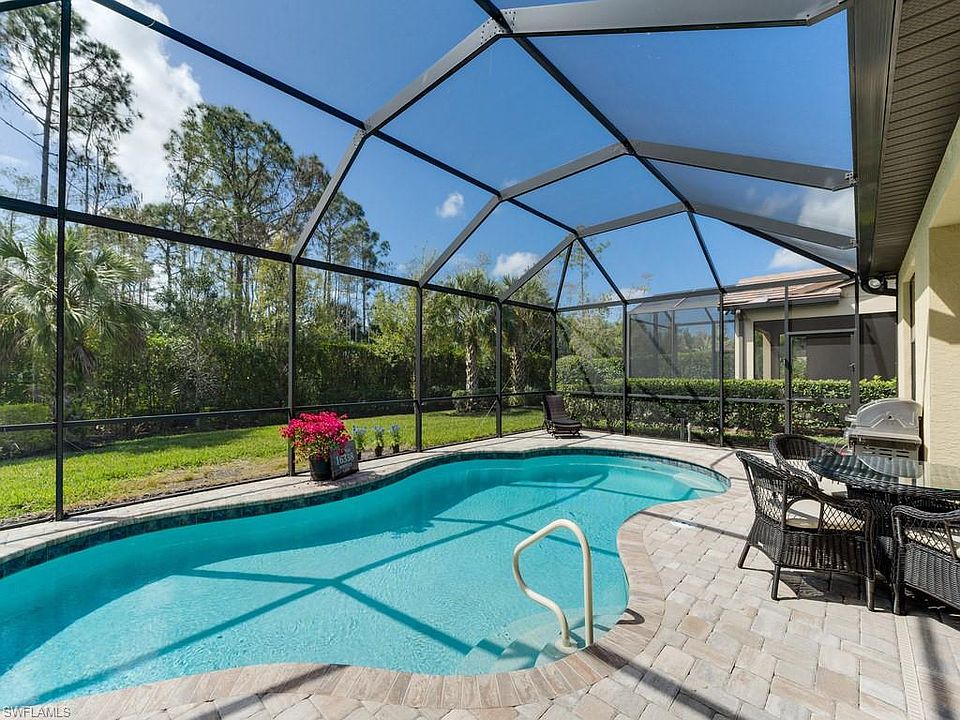 H.15777 - This like new Vernon Hill 3+ den/ 2 bath southern exposure pool home is move in ready. Freshly painted bedrooms and den, this home shows bright and coastal. Upgraded neutral tile throughout main living area and den, plantation shutters, electric slider covering, upgraded bathrooms. Quiet preserve views with large sun drenched backyard beyond pool offers maximum privacy and added play space for the kids. Home has only been occupied a few weeks a year. Camden Lakes boasts a fabulous cannot be beaten location west of I-75 location in the desirable Gulf Coast High School district and is one of the very few NATURAL GAS communities. Fitness room, community room, fire pit and grill, resort style pool, basketball court and sidewalks all part of this year round community. Easy access to beaches, the new Seed to Table market, schools, shopping and I-75.