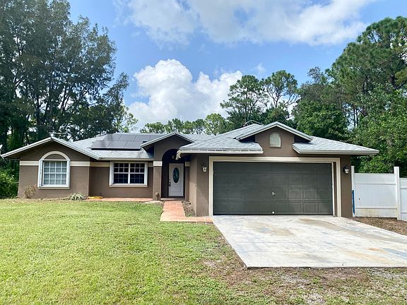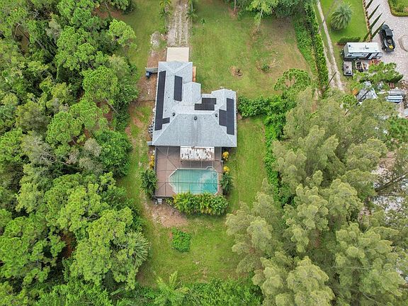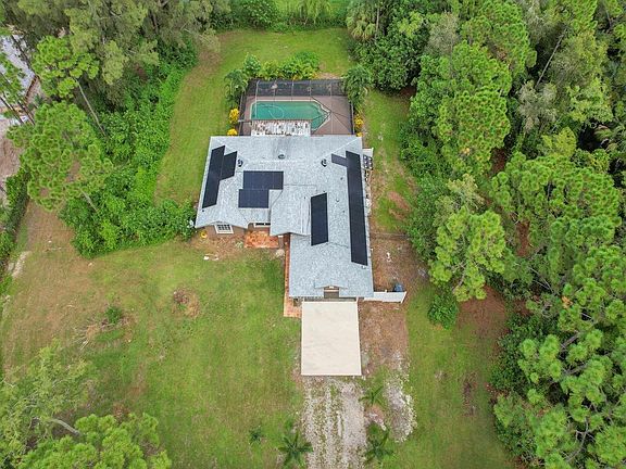 Enjoy the best of both worlds at this incredible location in the Acreage! Enjoy quiet living, privacy, and 1.25 acres of land with no HOA, and your own private pool while still being moments away from the restaurants and shopping at Westlake! This 3 bedroom 2 bathroom CBS home has a 2021 roof with solar panels (LOW FPL bill), newer kitchen and appliances, and a newer AC unit. There is a canal behind this house and it's on a dead-end road for even more privacy and great neighbors. The whole house has accordion shutters for hurricane protection. NO HOA so bring your boat, RV, camper, etc. A+ school zones! The pool also has solar heaters. 5 minutes from shopping plazas, Publix, and more! Come make this your dream home!
