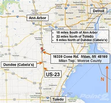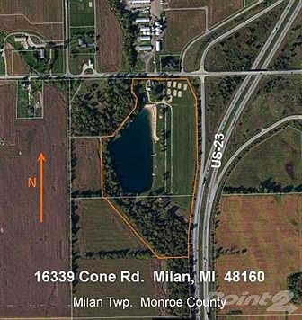 Consider this prime development business opportunity with approximately 2,000 feet of expressway frontage along US-23, and 563 feet of frontage on Cone Rd. Centrally located between Ann Arbor and Toledo, this property affords great expressway visibility for development purposes. Located at the US-23 / Cone Rd Interchange, one exit North of Cabela's, just 15 miles South of Ann Arbor and 22 miles North of Toledo. This 35 acre property, with a private 6 acre lake with sandy beach offers a variety of development possibilities. Could become a condo RV Park, a campground, private residential development, or a mixed use commercial development with some of these uses combined. Current existing business opportunity is Clean Water Beach'' which is a private beach open to the public with thousands of customers, and with a draw from all the major surrounding cities. Please consider this great opportunity.
