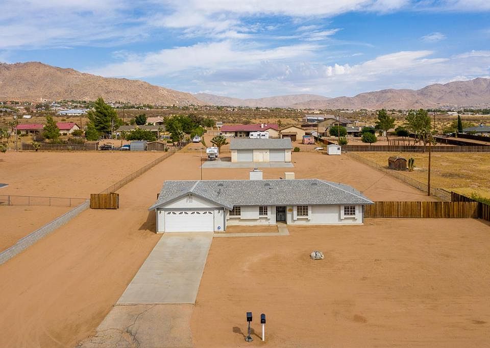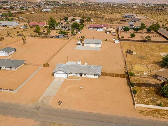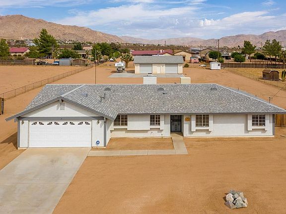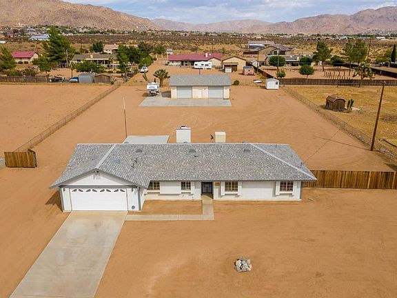 Rare opportunity to acquire a top quality workshop and detached ranch house on a full acre estate-lot (with 2 huge side access gates) in the desirable and serene Sycamore Rocks area of Apple Valley. Bring ALL your vehicles and toys! This property is Off-Road Heaven; adjacent to desert trails and some well-known accessible OHV areas. Pursue your hobbies and creative passions while you enjoy expansive views and spectacular sunsets from your home and detached hobby-space / workshop or monster garage. Priced to sell at $265K! This property appraised for over $300K earlier this year. (Owners are relocating out of state... creating a buyers' advantage opportunity!). The Workshop is 1,200 square feet of creative/hobby space (fits approx. 4-6 cars) with twin 14' high metal roll-up doors and center man-door. Workshop also has a small bathroom (toilet and janitorial sink with dedicated septic). Interior Clean-Room with storage mezzanine above. Integrated air lines (from ceiling) and hose reels for air tools. Phenomenal high ceiling with professional fluorescent lighting bays. Fully-functioning wood-burning stove with chimney. Industrial swamp-cooling system. Concealed recessed anchor points in foundation slab (used for automotive frame-straightening) Extensive flood-lit concrete apron on exterior front and side. Plentiful electrical outlets throughout (both 115V AND 220v) Dedicated shop phone-line and Direct TV dish installed. House is 3 bd, 2 bath & bonus room