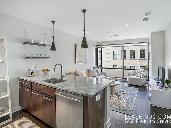 Welcome to The Aston, a modern one-bedroom condo on the 4th floor of a newer-construction building on 14th Street in the heart of Logan Circle. This stylish unit offers everything you need for comfortable and convenient city living, all in a location that simply can't be beat. With dining, shopping, and entertainment right outside your door, this is the perfect place to call home. Apartment Features: Beautiful dark hardwood flooring throughout main living area Tons of natural light from the floor-to-ceiling windows Open concept living/.dining room Kitchen with marble countertops, stainless steel appliances and bar seating Good sized bedroom Sleek and modern full bathroom Central heating and cooling Washer/Dryer in unit Parking: One assigned garage parking space available for an additional $275 per month. Utilities: Tenant is responsible for electricity. Gas and water are included in rent. Lease Terms: Available immediately. Minimum one year lease. Application fee is $35 and includes a credit check. Tenant is responsible for a building move-in and move-out fee of $200 ($350 for Saturday moves), plus a refundable move deposit. Pets considered on a case-by-case basis pending approval by Owner. Location: The Aston sits on the corner of 14th and R Street in arguably one of the best locations in DC. Step out of your door to all of the great options the 14th Street Corridor provides. Great shopping, amazing restaurants and coffee shops galore, plus three nearby grocery stores and plenty of gym/workout options. This is city living at its best.