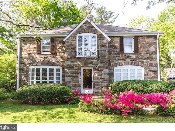 Extraordinary opportunity to own a classic stone gem! As you enter this all stone, center-hall colonial style home with slate roof, you are struck by the beauty of the hardwood floors and other elegant features throughout. Tucked away in a prestigious area of classic homes and mini-mansions where once appeared historic estates. The home offers a perfect floor plan (separate from the full basement) with a sunken living room, large dining room, sunken library/den/study, and a large eat-in kitchen on the first floor. A large bow window and a large picture window bring in lots of light. In the living room you'll notice the brass entry railings, the recessed lighting and the white marble fireplace. The kitchen and library also offer large picture windows with wide open views to the back patio and the lush, mature, tree-lined backyard with ample space for outdoor activities. There is a brand new central air conditioning and heating system, 3 huge bedrooms, 2.5 baths, a security system, and an exterior light-sensing lighting system. The extra-large master suite offers a private bath with stall shower, a walk-in closet, and a bonus sitting room/nursery/office containing its own generous closet and a large Juliette style picture window overlooking the front of the property. There is an extra long driveway to a detached one-car garage with a private entry side door and new automatic front door. All this conveniently located within walking distance of the train station with quick service to Center City and the airport. Schools, places of worship, hospitals and numerous dining and shopping facilities are located close by including Creekside Co-op, Whole Foods and Trader Joe's. Now offered at an improved price. Just waiting for your personal touch. Make it your own!