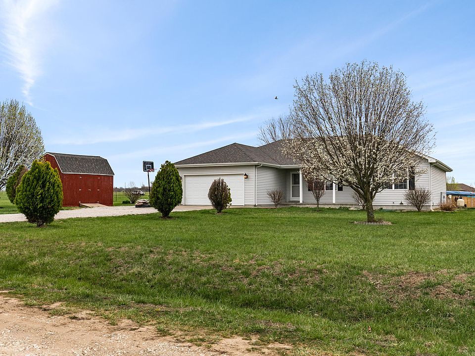 Well maintained 3 bedroom 2 bathroom home on 2.5 acres! Several updates including all new paint, carpet, and tile in 2018. Spacious living room, kitchen with lots of cabinet and counter space and new dishwasher 2019, dining area with pellet stove. Master bedroom with raised ceiling, walk-in closet, and private bathroom offering storage shelving, dual sink vanity, and walk-in shower. 2 more nice sized bedrooms and hall bathroom with tub/shower combo. Out back there is a large covered deck leading up to deck surrounding above ground pool. Fenced in back yard plus fencing around the full field great for livestock. Large storage shed and 2 car garage. Short drive to the highway and only 20 minutes to Springfield. Call to schedule your private showing today!