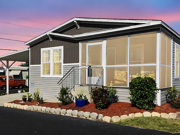 Seller is highly motivated and is accepting any reasonable offer! This LOVELY well-maintained 3 bedroom, 2 bath 2019 Champion Homes of Merit Manufactured Doublewide boasts QUALITY upgrades and is situated on a corner Lot! Enjoy all the extras that make this property highly desirable: covered parking, storage shed, paved driveway, and beautiful landscaping added with pebble rocks, mulch, and flower beds! A surge protector has been added to the power box - Double Pane windows throughout - NEWER home with a beautiful kitchen has UPGRADED side-by-side Stainless Steel refrigerator which includes an ice and water dispenser- UPGRADED self-cleaning Convection Oven/Stove with the added feature of a stove faucet pot filler! - Amana Washer and Dryer to remain - Farmhouse sink added with gooseneck faucet/sprayer - Pot filler added over the stove - Nice SPACIOUS 12x14 shed with electricity and LOTS of storage room - BEAUTIFUL chandelier in the dining area and dimmer switches added - Screened front porch to unwind - 4 Ceiling fans - All blinds to remain. This PRISTINE home is move-in ready, and furnishings are included! Merritt Island Village Resort Mobile Home Park is a 55+ adult community with LOW lot rent at just $510 /month including water (3kg), sewer, trash/recycle pickup, and basic lawn care. What a DEAL! One small animal under 25lb is permitted with park approval. RV/ Boat parking is available, check with management. No motorcycles permitted. FEATURES: - GREAT LOCATION, near Cape Canaveral cruise terminals, Cocoa Beach, Kennedy Space Center, shopping, and dining - are just minutes away! It is only 45 minutes from the Orlando airport and attractions. Enjoy water activities at your fingertips! Fishing, snorkeling, surfing, shelling, and more! Watch dolphins, porpoises, manatees, and fish on the community docks. Enjoy panoramic views of the Banana and Indian Rivers. This park is conveniently located near bus routes, shopping, dining, and medical services. Start your leisure lifestyle today! All listing information is deemed reliable but not guaranteed and should be independently verified through personal inspection by appropriate professionals. Our company does not and cannot guarantee or warrant the accuracy of this information or the condition of this property. Measurements are approximate. The buyer assumes full responsibility for obtaining all current rates of lot rent, fees, and pass-on costs. Additionally, the buyer is responsible for obtaining all rules, regulations, pet policies, etc., associated with the community, park, or home from the community/park manager. Our company is not responsible for quoting said fees or policies. Financing is available through 3rd party lenders. The sales price does not include tax, dealer fees, or administrative fees. Please contact the sales agent for additional information.