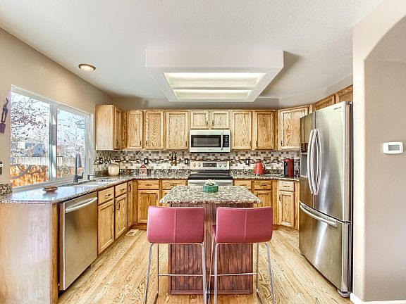 Wonderful Erie home in Arapahoe Ridge available NOW! Light & bright throughout, with vaulted ceilings & hardwood floors on the main level. Four bedrooms upstairs + one bedroom in the finished basement. Five-piece master bathroom with garden tub and spacious walk-in closet. Lovely eat-in kitchen with island, granite counters, stainless steel appliances & spacious pantry. Powder bath, laundry room with included washer/dryer, and cozy gas fireplace on the main level. Enjoy the private fenced backyard with large deck and pergola, perfect for outdoor BBQs. 2 car attached garage. Great neighborhood with a huge park, play structure, pool, tennis courts & sand volleyball court! BVSD School District. Short-term lease available (minimum 6 months). Rent includes trash & access to community pool & amenities. Tenant responsible for water/electric/gas. Pet deposit(s) required. No cats. Income requirements 3x the monthly rent. Application fee $25 per adult applicant for credit check.
