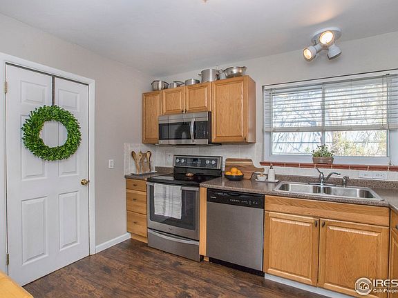 Cozy 3 bedroom, full bath, brick home within walking distance of Lake Loveland & downtown! Spacious living room. 3rd bedroom is on back of home & can be used as extra family room. Newly updated w/ stainless steel appliances & newer refrigerator in kitchen. Vinyl windows thru-out. Easy-to-maintain landscaping w/ covered front patio & over 1/3 of an acre of fenced property w/ sunny back patio & 4 large vegetable beds. 2 storage sheds & add'l detached garage provide 526 sq ft of additional storage.