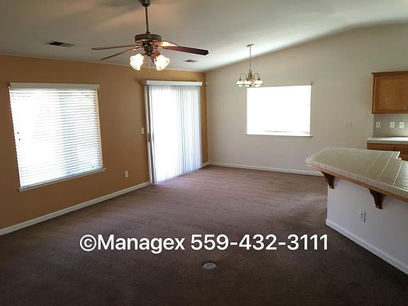 3BD/2BA house with central a/c, 2 car garage, inside washer/dryer hookups. Home is approximately 1367 square feet. $1300/month + $1000 deposit. One year lease. Tenant responsible for PG&E, water, sewer, and trash. Call today to schedule a viewing. Managex (559)432-3111. Tenant responsible for PG&E, water, sewer, trash. One year lease agreement.