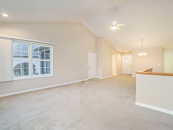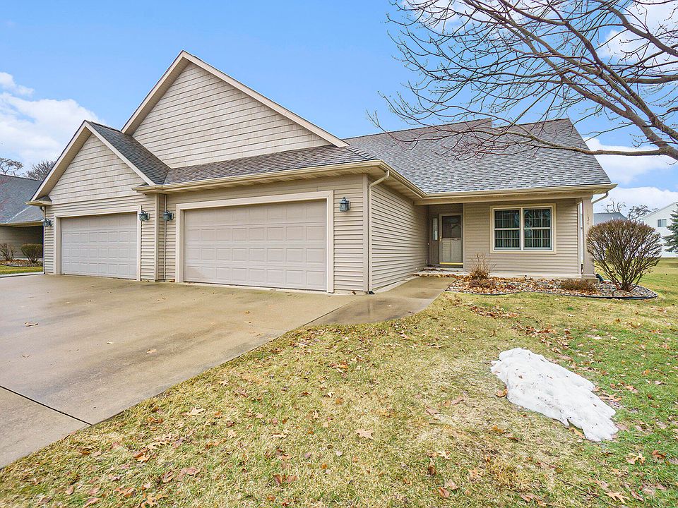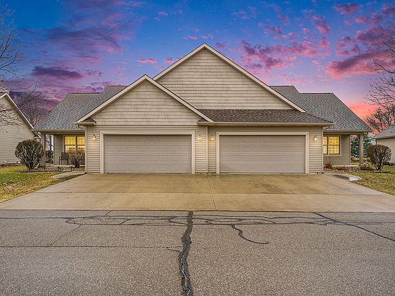 This lovely condo located in the Meadows 55+ community is ready to move into. You will love this 2 bedroom, 2 bath home which offers 1248 square feet of main floor living and a full basement with additional 1248 square feet to use for living, work space, or storage. The open concept dining room and living room with cathedral ceilings offers airy living and entertaining space. The kitchen has beautiful cabinets and ample counter space and is equipped with a side by side refrigerator, range and oven, dishwasher, and microwave. You will enjoy the laundry area which is conveniently located just off the kitchen. The spacious master suite boasts a full bath and large walk-in closet. The 2nd bedroom can be used as another bedroom or a den/sewing/craft room and offers a 2nd full bath and closet. There is a screened room just off the living room which provides plenty of fresh air, relaxation, and view of the landscape. The HOA fees cover snow removal and lawn maintenance. This condo has been well maintained and is in move in condition. Per owner , new water heater and water softener and 1 year old refrigerator/freezer. Freezer in garage that works can be included or will be removed by seller.
