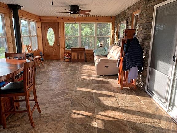 This updated 3 bedroom home with master and laundry on main level has a rustic feel from the moment you walk in. From the hand honed timbers to the stone wall extending from the basement to the second story this home is warm and inviting. Cook dinner on the stone faced island with gas cooktop and then relax in the heated sunroom. Gas fireplace in sunroom and living room will keep you warm all winter long. In the summer hang out in the pool and watch the sunset over the horizon. With 6+ acres and a 3 stall barn there is plenty of space for horses or a small farmette. Close to McConnell's Mill and Moraine State Park there is plenty of outdoor activity but yet small town living feel. Located on Rt 19 this property is also a great location for a business with tons of road frontage. The possibilities are endless.