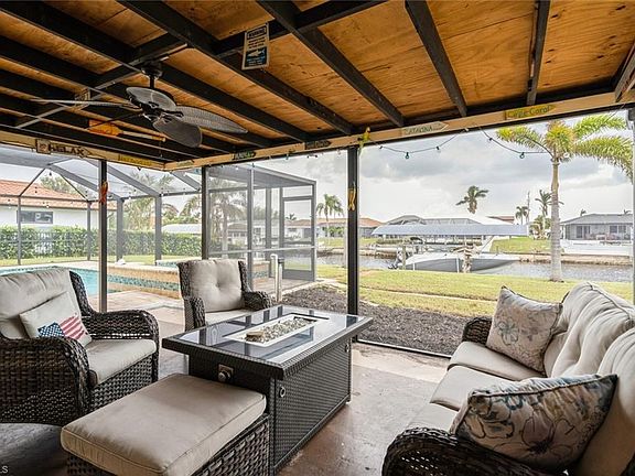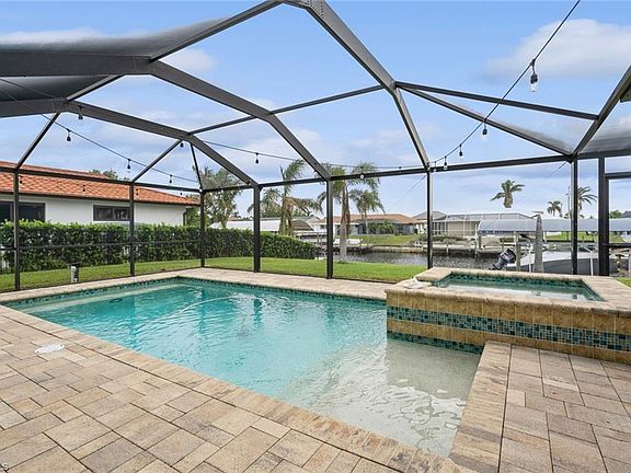 Savona neighborhood is one of the desirable neighborhoods in Cape Coral. Beautiful ready to move in CANAL POOL/SPA and DIRECT SAILBOAT GULF access home. Recently updated, SOUTHERN exposure. Excellent floor plan, Master bedroom is split from the other two bedrooms with En-suite full bath and walk-in shower. Large living room opens into a Galley style kitchen- features updated cabinets, granite counter tops large island with counter seating. Outside you have your very own private oasis retreat to relax in with the screened in lanai overlooking salt water pool/spa, with pavers. Private covered 7,000 lb boat lift, with concrete dock. Close to restaurants, shopping, and entertainment. Roof 2023, A/C 2019