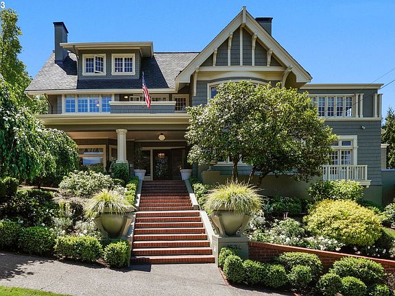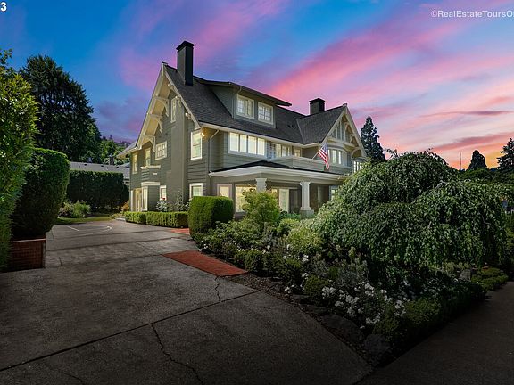 The L.B. Menefee House – a magnificent historic estate in Portland Heights, showcasing a blend of Colonial, Tudor Revival, and Arts & Crafts architectural influences. Situated in a prime location, this grand residence spans three lots in the Grid.Inside, the home features an abundance of stately spaces, including a spacious main-floor family room with a fireplace, quarter-sawn oak doors, and custom wainscoting. Artisan details abound, from floor-to-ceiling wood-paned windows in the family room to French doors leading to elegant outdoor spaces on both the main level and off the primary suite. Custom frescoes adorn the fireplaces in the living and family rooms, while virgin maple floors grace the upper level, and hand-laid patterned flooring enhances the den. Stunning ceiling designs add to the home's character throughout the main floor.The expansive primary suite boasts a fireplace, a massive walk-in closet, a soaking tub, a walk-in shower, and a double vanity. The second floor offers four bedrooms, each with en-suite baths for private living. The third floor features an additional bedroom, a full bath, a den, and extra storage space.A standout feature is the renovated 1,277 sq. ft. two-bedroom apartment with a separate entrance, fireplace, and private garden—offering versatility and additional living space (not included in the main home's total square footage).Designed by renowned architect John Bennes of Bennes, Tobey, and Hendricks, this estate was originally built for Lee Bruce Menefee, a prominent timber magnate in Oregon and southwest Washington. It was later acquired by the Roman Catholic Archdiocese of Portland and served as the residence of two archbishops, including Archbishop Alexander Christie, the founder of the University of Portland. In 1989, the home earned its place on the National Register of Historic Homes, cementing its legacy as one of Portland’s most distinguished properties. [Home Energy Score = 1. HES Report at https://rpt.greenbuildingregistry.com/hes/OR10192704]