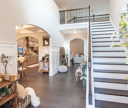 Better than new! Located in the desirable Camden Ridge neighborhood of Auburn, this inviting home offers an exceptional living experience. The property features 4 bedrooms, 3.5 baths, and an open concept design enhancing the sense of space and flow. The primary bedroom, conveniently situated on the lower level, offers privacy and comfort. Upstairs, three additional bedrooms, two baths, and a versatile loft space accommodate family and guests with ease. Wood flooring and gas logs in the great room add warmth to the interior, while quartz countertops and stainless appliances, including a gas stove, underscore the kitchen's appeal. Architectural details such as coffered ceilings and wainscoting in the foyer and dining room enrich the home's character. Outdoors, a fenced yard and covered patio promise leisure and entertainment opportunities. This property combines style, functionality, and the perfect location to create an inviting home for today's lifestyle.