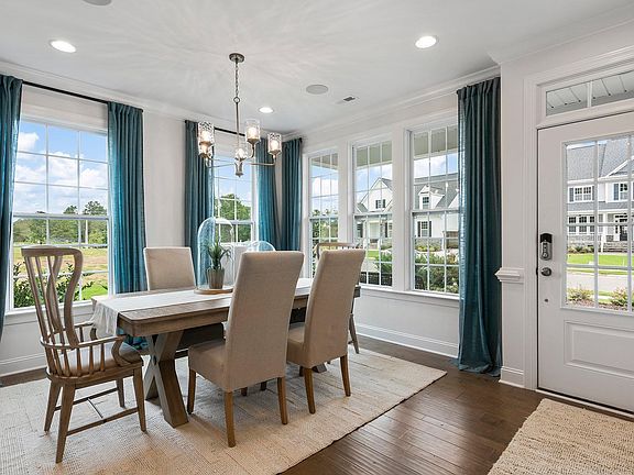 Bent Tree's popular Carteret plan features an open first floor, includes a versatile kitchen design, a chef's dream gourmet kitchen, hooded vent, tons of white upgraded cabinets, with a butler's pantry and a huge kitchen island, quartz countertops, ceramic tile backsplash, and SS appliances and farmhouse sink. The great room features a fireplace with built-ins and formal dining room and 1st floor guest suite with full bath. Off the kitchen you'll find a spacious screen porch and grill pad off the breakfast nook. Entire first floor includes EVP and carpet in the guest suite. Up the oak tread stairs you'll find a private owner's suite and also includes a separate bath oasis and a walk-in closet. Three additional bedrooms, a full bath a rec room and the laundry room round things out.