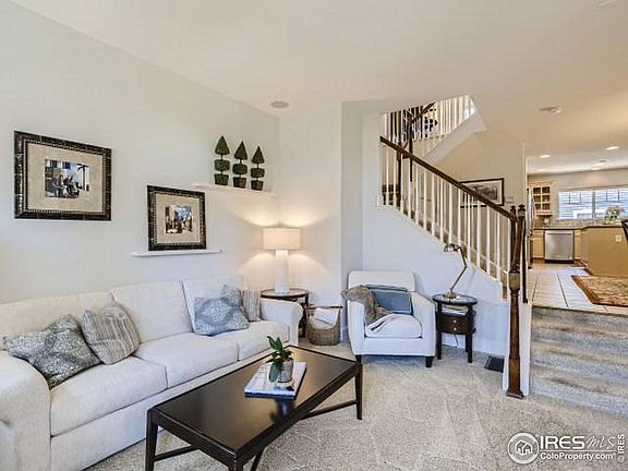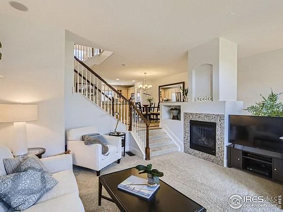 Fabulous SW Longmont townhome. Former model home with high end amenities. Kitchen features upgraded cabinetry with custom tile backsplash, pantry, hard surface countertops, center island, recessed lighting and SS appliances. Master suite offers crown molding, walk in closet with custom built-ins, upgraded bathroom tile and hard surface countertop. 2nd level loft area makes a great home office or family room. This loft can also be conformed to a 3rd bedroom. Fresh paint and custom blinds throughout the entire home. Covered front porch provides outdoor living space for that relaxing morning coffee or an evening glass of wine and BBQ. Other features include a living room fireplace, 2 car garage, basement storage area, newer dishwasher/refrigerator/hot water heater, clothes washer and dryer. Enjoy all the great restaurants and shopping in SW Longmont. Storage area is listed as basement square feet- is approx. 5'6" high with EZ access and offers great storage.
