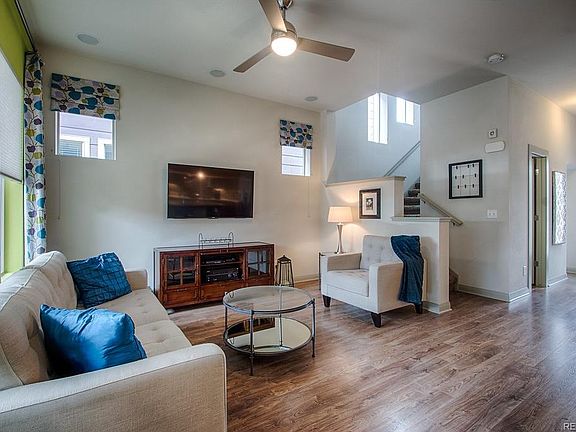 Former Model Home Available in Midtown! This home is simply the best value in this vibrant and growing community 15 minutes from downtown and easily accessible with a ten minute walk to light rail and public transportation. You'll love the backyard with TWO entertainment areas; Pergola perfect for outdoor living space and covered patio to view the Colorado sunsets! Landscaping is A+ including full drip systems and irrigation. Inside you'll find wood laminate flooring throughout with upgraded plush carpet! Very light and bright with large windows equipped with custom window treatments w/additional top/down window coverings. Enjoy cooking on your gas range/ appliances GE Monogram Stainless Steel with large kitchen island. Master Bedroom has it's own retreat or could be 4th bedroom. Large Master Bath with lighted vanity and large shower, next to your walk-in closet. Finished basement has high ceilings and plenty of room for entertaining or watching your favorite movie!