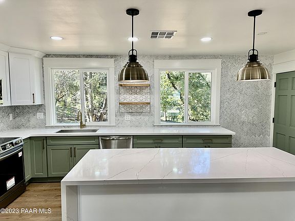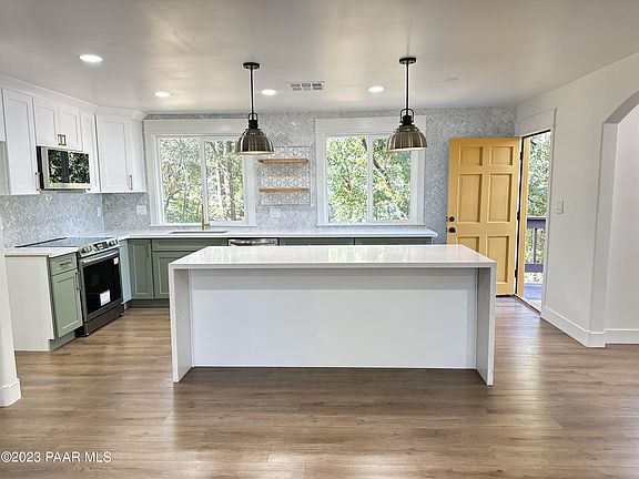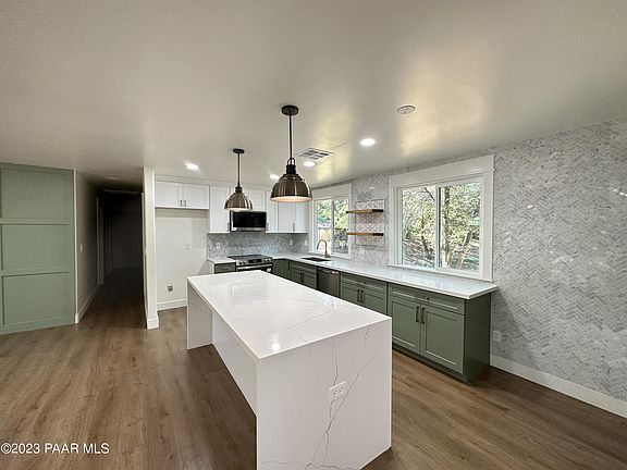 Welcome to your modern oasis in the heart of Prescott, Arizona! This fully remodeled house is a mere 12 minute drive from the iconic Whiskey Row offering you the perfect blend of convenience and tranquility.As you step inside, you'll be captivated by the meticulous attention to detail and the exquisite finishes that adorn this home. Custom touches throughout make this home one of a kind while beautiful luxury vinyl plank flooring adds a touch of sophistication to the space, making it both stylish and practical. This home boasts three spacious bedrooms, plus an office, and two full bathrooms, providing ample space for family and friends. The centerpiece of the home is the stunning gourmet kitchen featuring high end appliances, floor to ceiling marble backsplash,