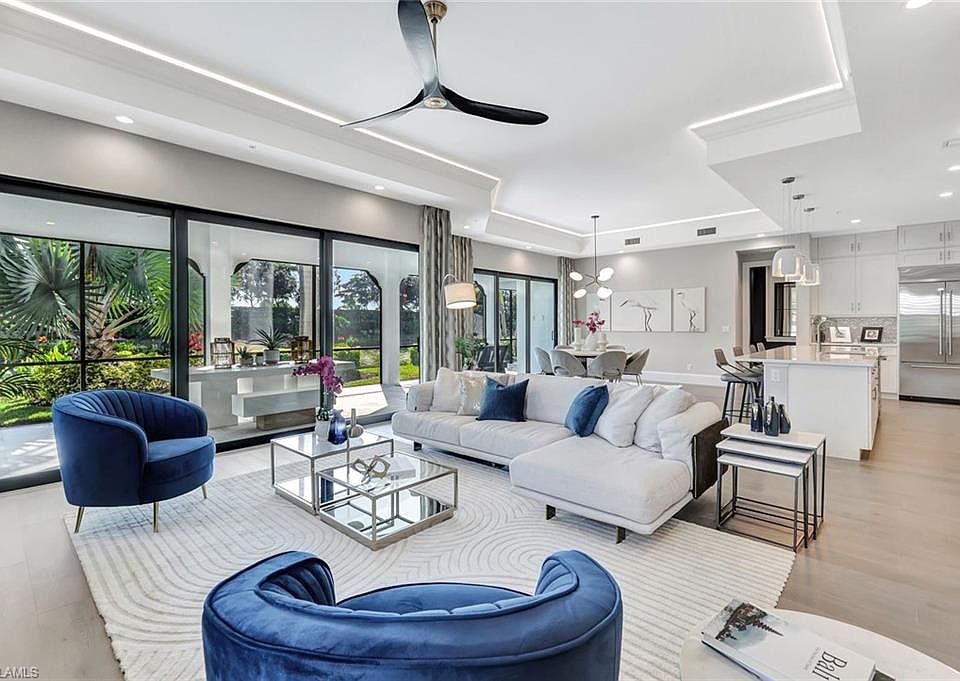 Back on the market in Talis Park! Updated with fresh, modern decor and refined contemporary finishes. This stunning first floor coach home (Messina Model) offers a little over 2500 square feet and boasts 3 bedrooms, 3.5 bathrooms, and a 2-car garage with all the upgrades you could dream of. Not only is each guest bedroom spacious, but they are also ensuites which is perfect for out-of-town guests. The stainless-steel appliances and gas cooktop in the kitchen are perfect for any home chef, while the 8' solid core 2 panel interior doors and crown molding throughout add an elegant touch to every room. The newer air conditioner with germicide light ensures a comfortable and healthy living environment year-round. Step outside to the outdoor kitchen with a new tile backsplash, perfect for entertaining guests on warm Florida evenings. The private screened lanai features marble flooring, creating a seamless transition from indoor to outdoor living. The garage is equipped with a lift for your golf cart, as well as extra shelving and a storage closet for all your organizational needs. This condo offers an elevated, move-in ready experience within one of Naples premier luxury communities. Talis Park's newly renovated golf course and driving range was designed by Greg Norman and Pete Dye and is ranked by Golf Digest as one of Florida's top 20 courses. A Short bike ride or golf cart drive to the clubhouse (voted Clubhouse of the year 2016 by Golf Inc. Magazine!) includes Core Fitness Center, Esprit Spa, Fiona’s Market Café, a resort style pool, and formal or casual dining in the award-winning restaurant. The community Sports Complex has 5 tennis courts, 4 pickleball courts, bocce, lap pool, and a dog park. A Sports Membership purchase is required. Don't miss your chance to own a piece of paradise in Talis Park, where every day feels like a vacation.