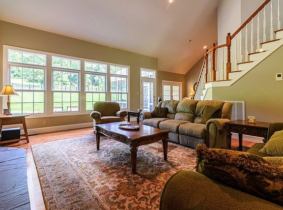 Extremely unique property only 9 minutes from Main Street in Abingdon! Beautiful custom-built one owner home sitting on 54 acres, with a creek. Known as "Three Springs Farm", this property is tucked away down a private gravel lane, surrounded by both pasture land and wooded hills. Custom rock work surrounds the driveway, with partial fencing around the home and land, including an electric fence for cattle.The kitchen is furnished with custom oak cabinetry, Kenmore ELITE appliances including a double convection oven, 3 door refrigerator, dishwasher and range. Separate laundry room with front load washer and dryer and door leading to the covered front porch. The spacious, open family room is equipped with a Sony 52" flat screen TV and a Catalytic wood burning BuckStove. Large windows allow for frequent sightings of deer, turkey and other wildlife. The large main level Master Bedroom offers beautiful hardwood floors and a Master Bathroom with travertine tile shower and jetted/heated tub.