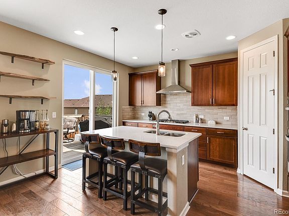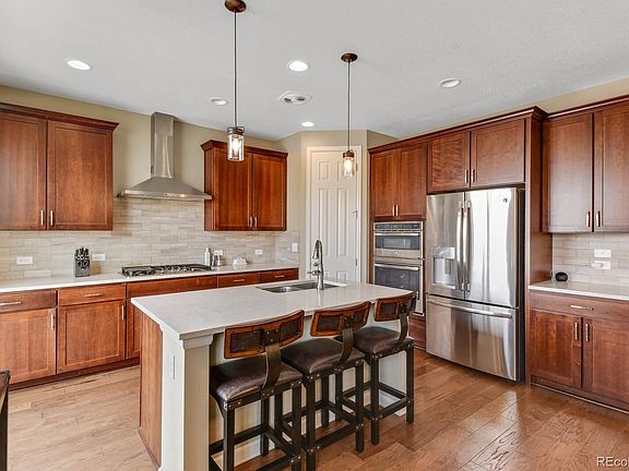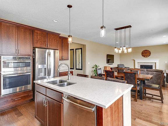 Come see this gorgeous sprawling ranch Buckley Ranch home. There have been so many upgrades throughout the space. Beautiful gourmet kitchen with double ovens, gas range, stainless steel refrigerator. Great open concept living while enjoying the deck right outside. Three bedrooms upstairs with full guest bathroom featuring dual sinks and a large master retreat. Perfect for working from home with large office space! Downstairs offers a phenomenal bar area with large family room and walkout basement. Downstairs also includes an additional bedroom and bathroom. Tons of storage in this home up and down, as well as the large 3 car garage. Home is part of a Metro District rather than an HOA with dues included in the property taxes.