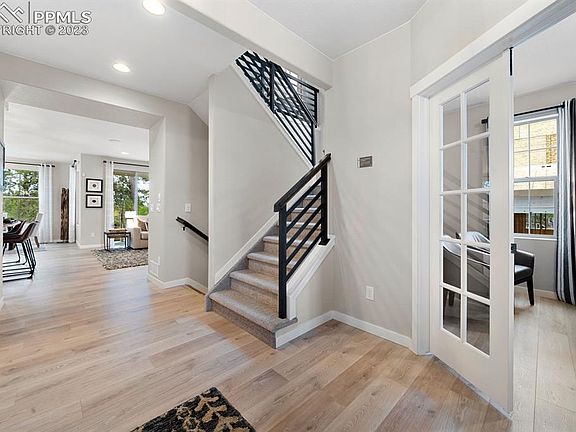 Builder model. Somerset 2-story plan with 4 car (3 car plus tandem) garage in Sanctuary Pointe. 5 bedroom, 3.5 bath plus loft and main level study. Designer kitchen features knotty alder cabinets with a smoke gray finish, Champagne White granite countertops, large pantry, and stainless appliances including gas cooktop and refrigerator. Owner's entry from garage features mud bench and drop zone leading into the kitchen. From the family room walk through double sliding glass doors onto a covered patio with gas line for a grill or fire pit. The contemporary Cosmo fireplace in the family room is flanked by built-in shelving. On the upper level the large master bedroom leads to the bathroom with expanded master shower with seat, double sinks and spacious walk-in closet. The upper floor also hosts three additional bedrooms and a large loft. Home comes equipped with air conditioning and smart home package. The finished basement includes 1ft. taller ceilings, wet bar, plus 1 bedroom, 1 bathroom and an expansive recreation room. As a builder model this home features gorgeous, thoughtfully selected interior finishes. Full landscaping included.