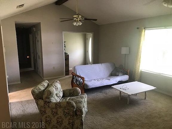 Four bedroom, 2 bath, brick home located on nearly an acre (2 lots) just outside of Bay Minette's city limits. Home features over 1800 square feet, living room with cathedral ceiling, breakfast area off of kitchen, large den, rear patio and updated shower, double vanity counter top and tile in master bathroom. New roof installed October 2018.