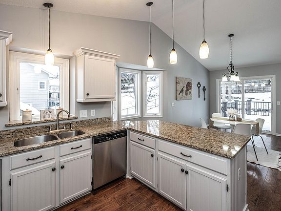 SPACIOUS open 6-bed/3bath split! Freshly painted through out, MANY updates include-NEW carpet, fridge, cook top, lighting, sidewalk & steps along with other updates this home will be sure to please! Vaulted open kitchen w/SS appliances, granite countertops & breakfast bar. Large MSTR w/walk-in & full private bath & deck. Lg LL family room w/brick FPLC and stone wet-bar. Large 3 stall garage. Large MAINTENANCE FREE deck, pergola w/paver patio, fire pit and shed/play house on LARGE 1/2 acre back yard Buyers/agent to verify measurements