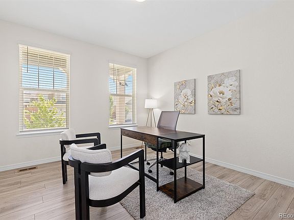 Welcome to the highly sought-after Lennar Stonehaven - a spacious and elegant two-story home designed for modern living with a 4-car garage. This exceptional property boasts 4 bedrooms plus office that could be 5th bedroom, 4 bathrooms, and over 2,700 square feet of thoughtfully designed living. A rare 4-car garage, perfect for car enthusiasts, hobbyists, or extra storage needs. The open-concept main level offers a seamless flow from the dining space to the double-height ceiling living room and spacious kitchen complete with granite counters, stainless steel appliances, a large island, and walk-in pantry. Walk outside to your large covered deck and private backyard. A main-floor office with full bath is ideal for private home office or guest space. Upstairs you'll find a luxurious primary suite with spa-like en-suite bathroom and dual walk-in closets. The second bedroom offers an en-suite bathroom while the 2 additional bedrooms share a Jack-and-Jill bathroom. Upstairs laundry room is spacious & convenient. A full unfinished basement with endless potential, energy-efficient systems, and smart home integration. Convenient to Denver, DIA, and major retail. Don't miss your opportunity to own this excellent home in Orchard Farms!