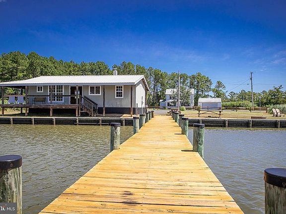 Tranquil waterfront farm house (1704 sq ft) on St George Island boasts 5 acres including picturesque wetlands. Island Creek enters on the St Marys River at it's convergegnce with the Potomac River. From there it's about 10 miles by boat to Point Lookout and the mouth of the Chesapeake Bay. The property includes a 2-car detached garage (576 sq ft), paved driveway and a pet-friendly fenced yard. There's also a huge heated & cooled "Waterman's Shed" (800 sq feet) with a covered wrap-around porch (additional 672 sq feet), fire pit, picnic tables & large second parking area. OH WAIT---don't forget the T-shaped, 83-foot dock/pier and the resident osprey nesting box. Use the "Waterman's Shed" as a workshop, guest space, crab house, boat house, artist studio, or home office---you decide! The farm house has 3 bedrooms and 1 bath plus 2 porches and a fully-fenced yard. The 3 upstairs bedrooms all have beautiful hardwood floors and views of the water and/or wetlands. The waterman's shed has an additional full bath, space for a bedroom or office and a large living area with a wood stove, heat and AC. The covered wrap around porch on the waterman's shed is absolutely fantastic. It was designed to be easily upgraded to a screened porch. This property is a nature lover's delight. Watch the local wildlife from the many porches or just listen to the birds. Have your morning coffee with the local heron. Watch the nesting osprey raise, feed and fledge their young. Boat, fish or crab from your private dock/pier. Push your skiff around Island Creek and search for soft crabs. Put a couple of crap pots off the dock and enjoy some steamed crabs. Let guests collect periwinkles from the wetlands and see how long it takes for them to crawl back out of the jar. You won't be dreaming of your next vacation---you will be living the dream! Farm house has a recently-installed heat pump with oil backup system and central air. The waterman's shed has a wood stove as well as a