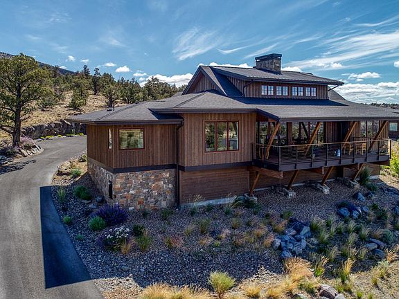 Phenomenal home located at the top of the ranch. Panoramic Cascade Mountain views and high desert sage surround this gorgeous custom home. As you enter the home, you are greeted by an expansive great room featuring large windows, hardwood flooring, wood built-ins, vaulted ceilings, and a double sided free standing fireplace. Enjoy spacious living, dining and gourmet indoor cooking. The chef's kitchen includes top of the line appliances, an island, beautiful cabinetry and a farmhouse sink. The utility room doubles as a mud room and offers plenty of storage as well as tile floors and a utility sink. The Master bedroom has sweeping views of the mountains, access to the deck, a standalone tub, two beautiful vanities and a large walk in closet. Another ensuite bedroom and large office/den round out the main level. Upstairs and through a private entrance is a casita with an open area studio concept including a bedroom, sitting area, kitchen, bathroom and private patio. The vaulted deck off