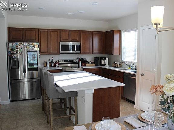 This Townhome is like new...less than a year old in a new construction community that is sold out. Beautiful kitchen with quartz counters, stainless appliances with a smart refrigerator, large island and large dining room off the kitchen with windows that bring in lots of natural light. Main level complete with laminate flooring throughout. Main level master with attached bath and walk in closet. Laundry on the main level Upstairs has an open railing that makes the main level feel bright. Two bedrooms with one having lots of west facing windows with natural light. The second bedroom has a large walk in closet. Full bath upstairs. This is ideal for monument living with no yard maintenance.