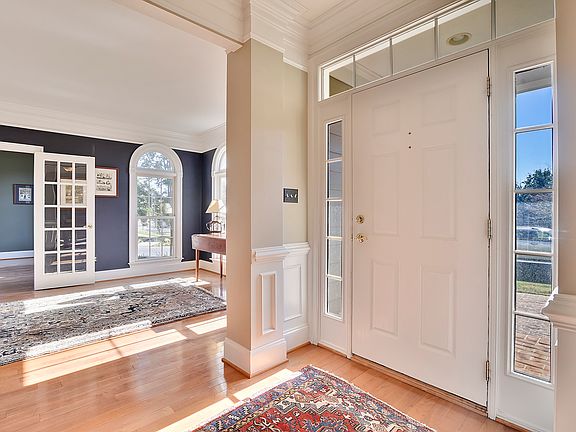 PRICED TO SELL!! Over 5,700 sq ft. of luxury living space situated on 1/2+ acre backing to the 9th fairway in sought after Raspberry Falls. This 5 bdrm 4.5 bath beautiful home features a gourmet kitchen w/ SS appliances & granite counters, floor to ceiling stone fp, custom built-in bookshelves, main lvl study & bonus sun rm. Lower lvl is entertainer's paradise w/ media rm/rec rm/bdrm/workshop.